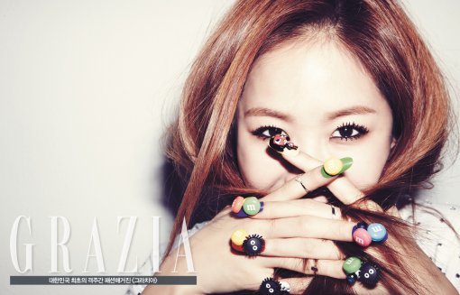 이날 화보의 콘셉트는 소유가 제안하는 2015년 뷰티 트렌드. 페이크 타투, 페이크 피어싱, 팝 네일, 라커 립 등을 건강하고 섹시한 느낌으로 소화해냈다.