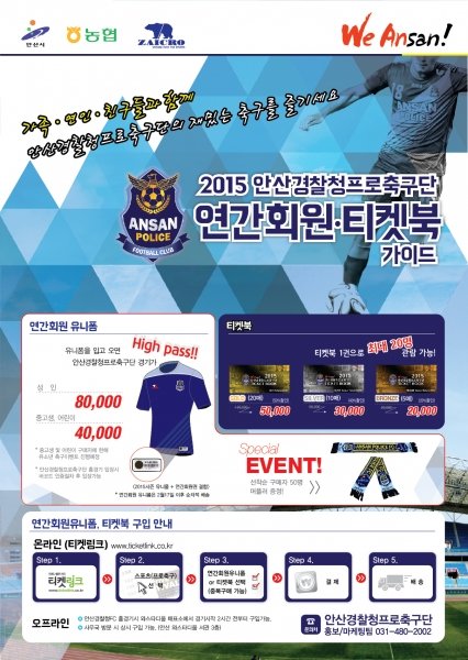 안산경찰청프로축구단은 2일 오후 3시부터 티켓링크(ticketlink.co.kr)를 통해 2015 시즌 연간회원권과 티켓 북을 판매한다.