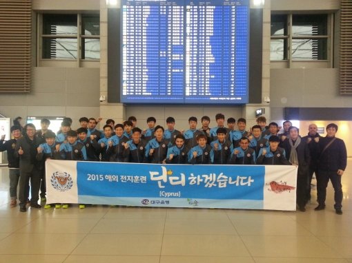 프로축구 대구FC 선수단이 1일 밤 힘찬 목소리로 각오를 다지고, 해외 전지훈련지인 키프로스로 출발했다.