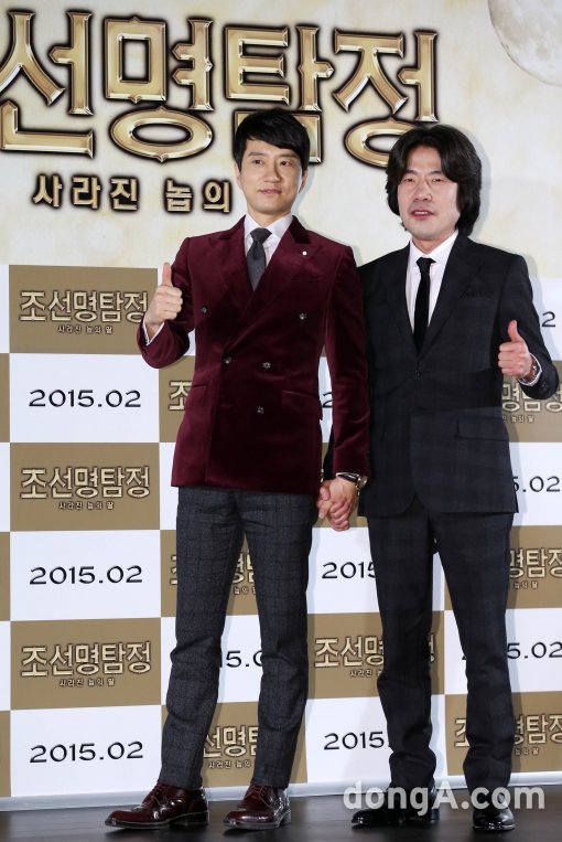 배우 김명민(왼쪽)과 오달수가 2일 오후 서울 동대문구 메가박스에서 열린 영화 조선명탐정 : 사라진 놉의 딸 언론배급시사회에서 포토타임을 하고 있다.