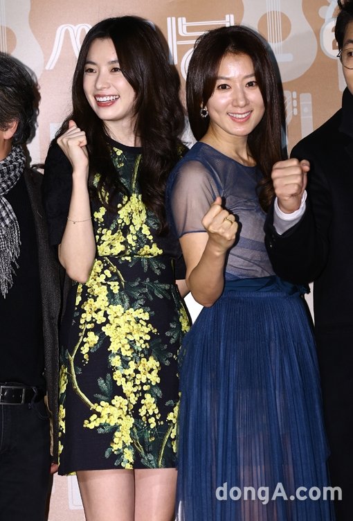 배우 한효주(왼쪽), 김희애가 2일 오후 서울 영등포구 영등포CGV에서 열린 영화 ‘쎄시봉’ VIP시사회에서 포토타임을 하고 있다.
