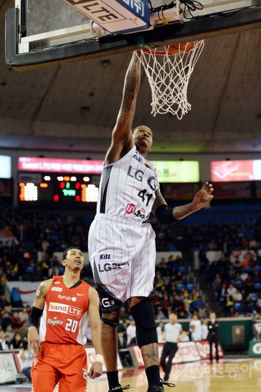2일 오후 서울 잠실학생체육관에서 열린 ‘2014-2015 KCC 프로농구’ 서울 SK 나이츠와 창원 LG 세이커스의 경기에서 LG 제퍼슨이 원핸드 덩크를 성공시키고 있다.