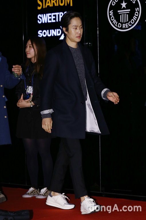 배우 정우가 2일 오후 서울 영등포구 영등포CGV에서 열린 영화 ‘쎄시봉’ VIP시사회에서 포토타임을 하고 있다.