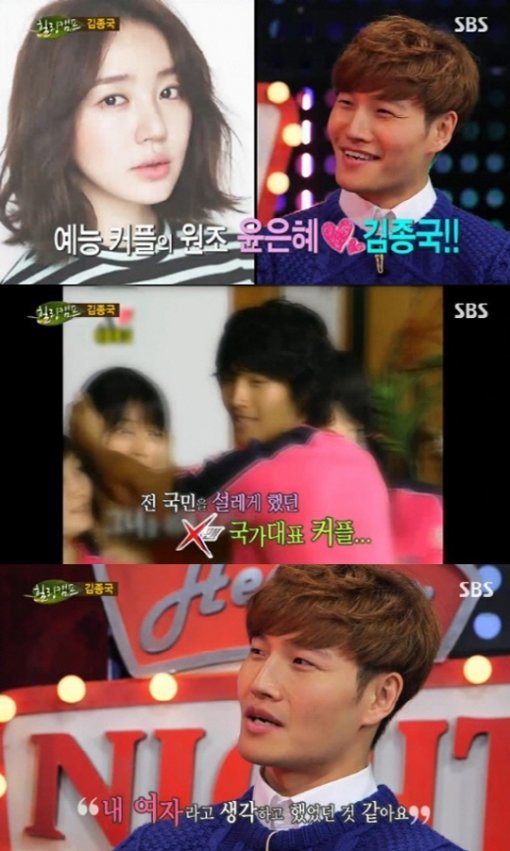 그러자 MC 성유리는 "윤은혜씨랑 그쯤에서 사귀었나?"라며 질문을 던졌고, 이에 당황한 표정을 짓던 김종국은 "사귀었으면 좋았겠죠?"라며 능청스런 웃음을 지었다.
