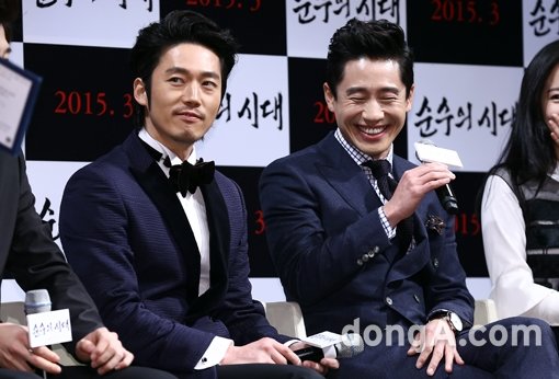 배우 장혁(왼쪽), 신하균이 3일 오전 서울 강남구 압구정CGV에서 열린 영화 ‘순수의 시대’ 제작보고회에서 기자간담회를 하고 있다.