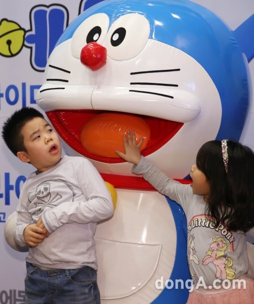 개그맨 정졸철의 아들 정시후(왼쪽)와 정시아가 3일 오후 서울 강남구 코엑스메가박스에서 열린 에니메이션 '도라에몽: 스탠바이미' 세대공감 특별시사회에 앞서 포토타임을 하고 있다.