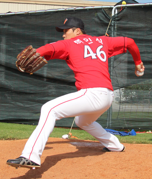 SK 백인식, 美 플로리다 전훈 홍백전서 2이닝 무실점
