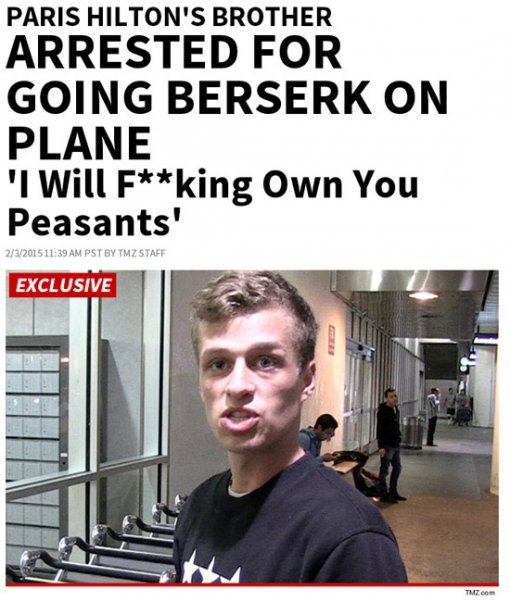 패리스 힐튼의 남동생 콘래드 힐튼이 기내 난동을 부린 사실이 뒤늦게 밝혀졌다.