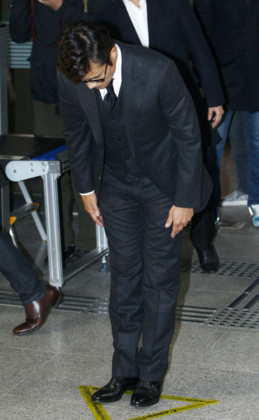갑작스런 상황이 몰고 온 위기의 순간, 스타들은 어떤 선택을 할까. 사진은 지난해 11월24일 이병헌이 ‘50억 협박’ 사건의 공판에 증인으로 출석하기 전 사과하는 모습. 사진|스포츠코리아