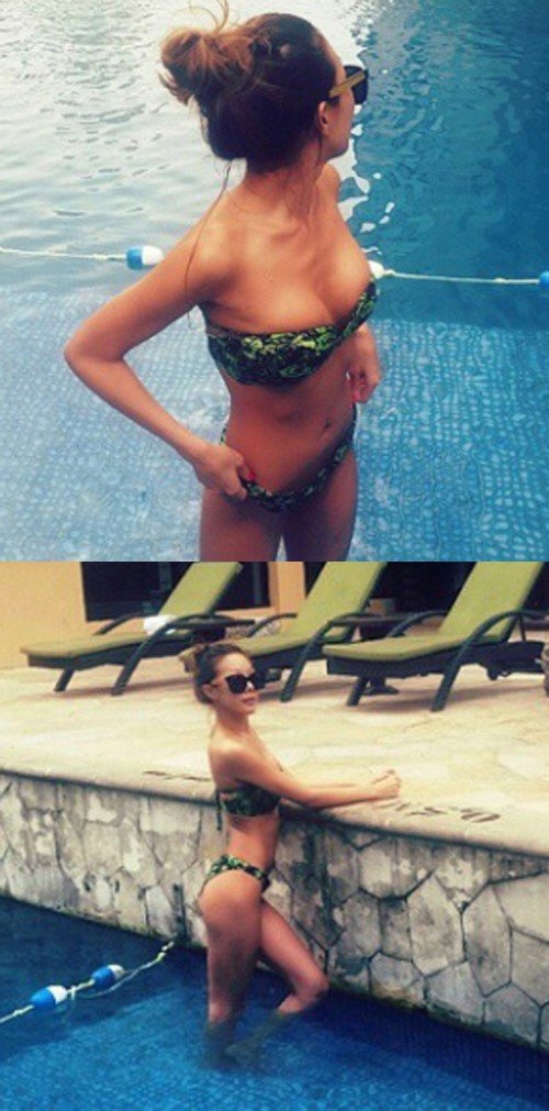 사진 속 제시는 인도네시아의 한 호텔 야외 수영장에서 여유를 만끽하고 있는 모습. 까무잡잡한 피부와 잘 어울리는 화려한 패턴의 비키니를 입은 제시는 매끈한 각선미와 볼륨감 넘치는 몸매를 한껏 뽐내고 있다.