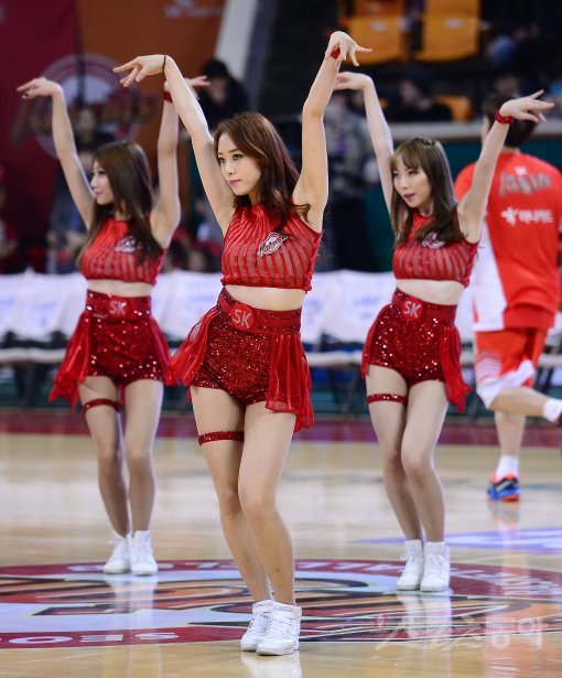 8일 잠실학생체육관에서 열린 2014-2015 프로농구 서울SK 대 원주동부 경기에서 치어리더가 오프닝 공연을 하고 있다.