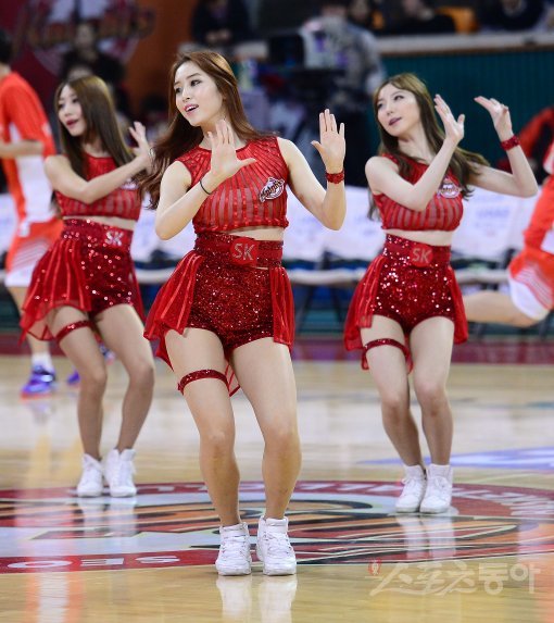 8일 잠실학생체육관에서 열린 2014-2015 프로농구 서울SK 대 원주동부 경기에서 치어리더가 오프닝 공연을 하고 있다.