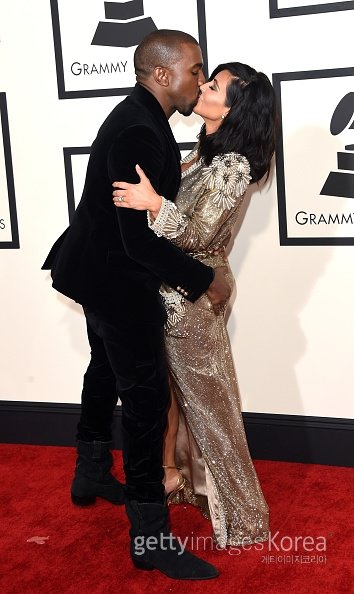 가수 카니예 웨스트가 아내 킴 카다시안과 함께 그래미 어워드 레드카펫에 올랐다.