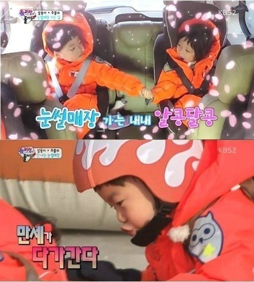 눈썰매장으로 향하는 차 안에서 추사랑은 옆자리에 앉은 만세의 이름을 불렀다. 둘은 서로 마주보며 웃다가 손을 꼭 잡았다. 추사랑 만세는 스키장에 도착할 때까지 손을 잡고 알콩달콩한 모습을 보였다.