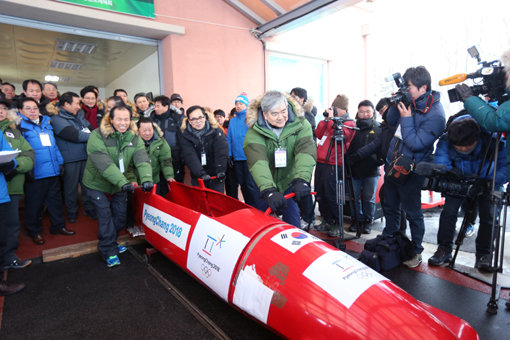 평창 알펜시아 봅슬레이 스타트 훈련장에선 동계종목 체험 및 시승 행사가 열렸다. 조양호 조직위원장, 최문순 지사, 김종 차관, 김정행 회장은 4인승 봅슬레이를 끌며 성공적인 올림픽 개최를 기원했다. 조 위원장은 “3년이 남았다고 하지만, 테스트 이벤트를 감안하면 1년밖에 남지 않은 셈이다. 전력을 다해 성공적으로 이끌겠다. 경기장의 사후 활용 방안 등도 모범적인 결론을 내겠다. 2011년 유치 당시처럼 온 국민의 관심이 필요한 시점”이라고 밝혔다. 이어 분산개최 논란을 의식한 듯 “경기 일정과 장소는 완전히 고정됐다. 변화는 없을 것”이라고 못 박았다.
