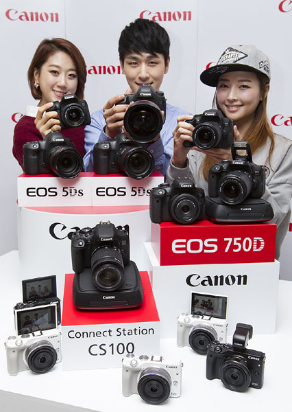 무엇보다 눈길을 끈 것은 초고화소 DSLR 카메라. ‘EOS 5Ds’는 세계 최초로 약 5060만 화소의 35mm 풀프레임 이미지 센서를 달아 스튜디오나 풍경 촬영에 압도적 해상력을 발휘한다. 모니터에서 촬영한 사진을 100%로 확대하면 피사체의 섬세한 부분까지 표현할 수 있다. 캐논은 해상력과 색 재현에 초점을 둔 형제 모델 ‘EOS 5DsR’도 동시에 선보였다. 두 제품은 기존 ‘EOS 5D 마크3’의 후속 제품이 아닌 새로운 고화소 라인업이다. 6월 출시예정이며 가격은 미정이다. 이미지 저장솔루션 ‘커넥트 스테이션 CS100’은 근거리무선통신(NFC) 등을 이용해 별도의 리더기를 사용하지 않고도 간편하게 결과물을 저장하고, 다른 기기와 공유할 수 있도록 해준다. 캐논은 이밖에도 프리미엄 엔트리 DSLR 카메라 ‘EOS 750D’와 미러리스 카메라 ‘EOS M3’, 콤팩트 카메라 ‘파워샷 SX410 IS’ ‘IXUS 275 HS’ ‘IXUS 160’ 등 다양한 제품군을 공개했다.