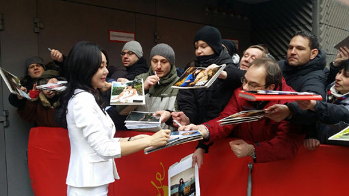 영화 ‘국제시장’으로 제65회 베를린 국제영화제를 찾은 배우 김윤진이 9일(한국시간) 독일 베를린 포츠담광장 인근 호텔에서 팬들로부터 사인 공세를 받고 았다. 사진제공|자이온엔터테인먼트