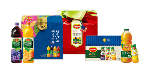 델몬트 병 선물세트는 명절마다 인기가 많았던 베스트셀러 위주로 구성했다. 다양한 구성의 프리미엄 제품을 즐길 수 있는 ‘프리미엄 오렌지·포도·사과 3본입 세트’, 제주감귤 100%를 사용한 ‘제주감귤주스 세트’, 프리미엄 오렌지주스만으로 구성된 ‘오렌지주스 세트’ 등 3종을 준비했다. 1.5L페트는 한국의 미가 물씬 풍기는 보석함 느낌을 살려 포장재를 고급스럽게 꾸민 ‘포도·매실·제주감귤 선물세트’와 단아한 고급 보자기 모양의 선물포장박스에 담긴 오렌지·포도·망고·토마토 주스로 구성된 ‘혼합 4본 세트’ 2종으로 구성했다. 이 밖에도 꾸준한 사랑을 받고 있는 프리미엄 오렌지·포도·망고 등으로 구성된 ‘델몬트 소병 12본 세트’ 2종도 명절분위기를 듬뿍 담은 포장재를 활용해 정성을 더했다.