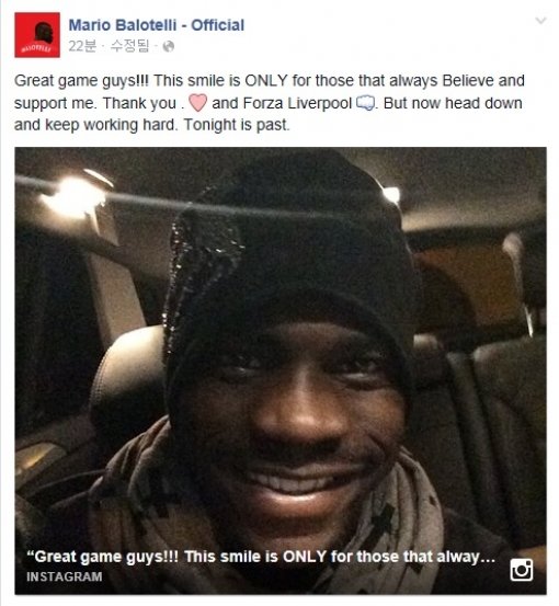 경기 후 발로텔리는 자신의 SNS에 활짝 미소 짓는 자신의 사진을 게재하며 “훌륭한 경기였다. 이 미소는 오직 항상 날 믿고 지지해준 사람들을 위한 것이다. 감사하다. 가자 리버풀. 하지만 고개를 숙이고 열심히 해 나가야 한다. 오늘 일은 지나갔다”며 감격하는 동시에 마음을 다잡기도 했다.
