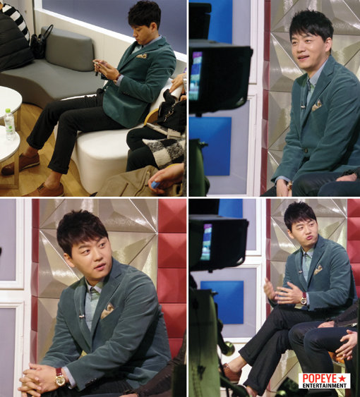 또 다른 사진에는 녹화 바로 직전 라디오 스타 세트에서 출연 배우들과 담소를 나누고 있는 모습이 담겨 있다. 특히 그는 다리를 꼬고 무릎에 손을 얹은 자세는 예능에 임하는 그의 남다른 여유를 보였다.