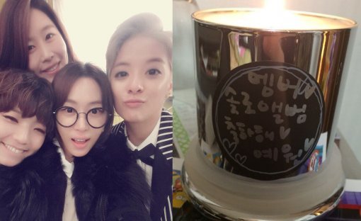 공개된 사진 속 강예원은 뮤직비디오 촬영장을 함께 방문한 MBC ‘진짜 사나이-여군특집2’의 멤버 김지영, 안영미와 솔로앨범 주인공 엠버까지 넷이서 옹기종기 붙어 다정하게 찍은 사진과 엠버에게 응원의 메시지를 담아 선물한 캔들의 인증샷도 공개하며 끈끈한 전우애를 과시했다.