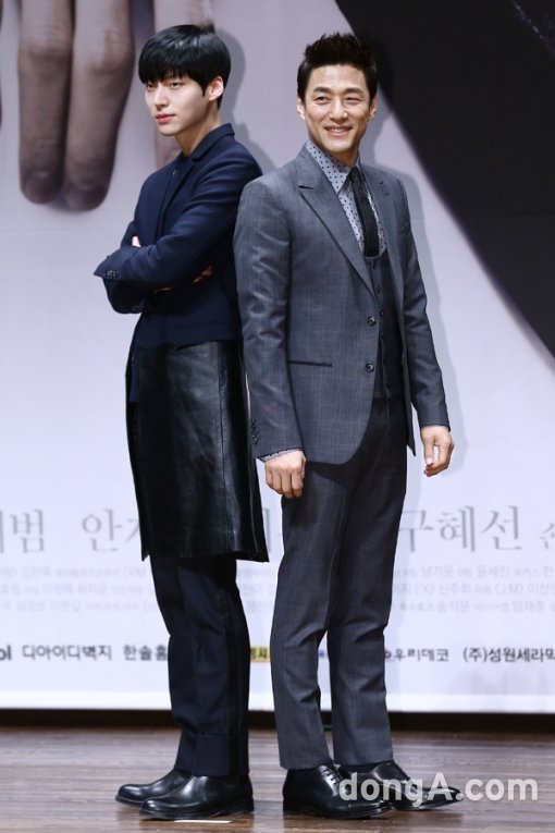 배우 안재현(왼쪽), 지진희가 11일 오후 서울 서초구 서울 성모병원에서 열린 KBS 월화드라마 ‘블러드’ 제작발표회에서 포토타임을 하고 있다.