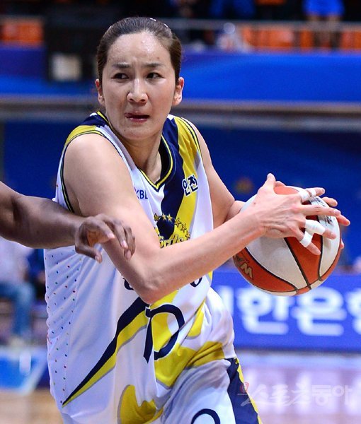 신한은행은 1월 28일 KDB생명과의 2대2 트레이드를 통해 국가대표 센터 신정자(35·사진)를 영입했다. 신정자의 가세로 신한은행은 제공권의 위력을 한층 강화했다. 여기에 경험까지 더했다. 겉으로 드러나는 모양새만 보면 어쨌든 신한은행은 디펜딩 챔피언 우리은행을 위협할 수 있는 전력을 꾸렸다.