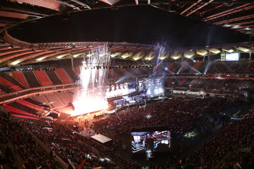 2015 시즌을 시작한 리그 오브 레전드가 e스포츠계를 후끈 달구고 있다. ‘LoL 챔피언스 코리아’가 초반부터 치열한 순위경쟁이 벌어지면서 용산 e스포츠스타디움은 매 경기 게임팬들로 가득 들어찬다. 2014 롤드컵 결승전 장면. 사진제공|라이엇게임즈