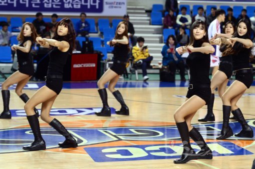 11일 전주실내체육관에서 열린 ‘2014-2015 KCC 프로농구’ 전주 KCC와 고양 오리온스의 경기에서 KCC 치어리더가 화려한 공연을 선보이고 있다.