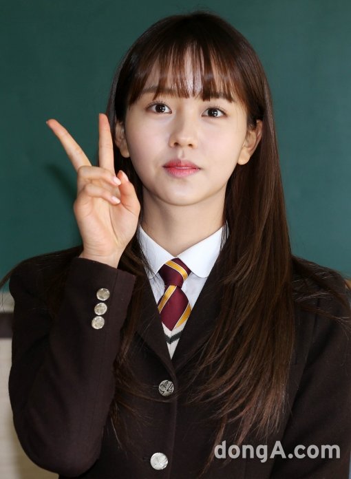 배우 김소현이 12일 오전 경기도 용인 수지구 문정중학교에서 열린 졸업식에서 포즈를 취하고 있다.
