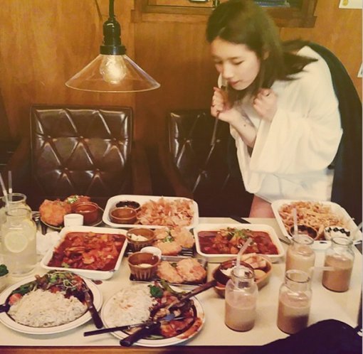 미쓰에이 수지가 식욕을 자극하는 ‘먹방 직전샷’을 공개했다.