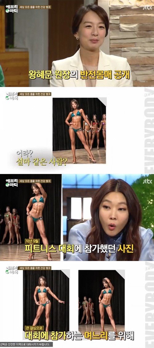 왕혜문 원장의 비키니 사진을 본 출연진들은 "합성 아니냐"며 격한 반응을 보였고, 왕혜문 원장은 "얼마 안 됐다. 작년 9월 피트니스 대회에 참가했을 때 찍은 사진"이라고 이야기했다.