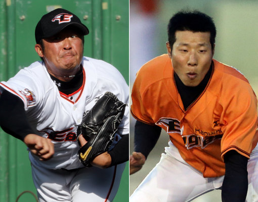 불혹의 임경완(왼쪽)과 권용관(오른쪽)이 작년 각각 SK와 LG에서 방출된 뒤 한화에서 현역의 마지막 불꽃을 태우고 있다. 지옥훈련을 소화하며 새 시즌 중책을 노리고 있다. 사진제공|한화