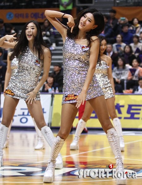 15일 오후 2시 고양체육관에서 열린 2014-2015 KCC 남자프로농구 고양 오리온스 대 창원 LG 세이커스 경기에 앞서 오리온스 치어리더들이 멋진 공연을 펼치고 있다.