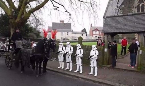 이는 마치 스톰 트루퍼 군대가 악당 다스 베이더의 마지막 길을 호위하는 것 같았다. 이것은 스타워즈를 너무 사랑한 디콘을 위해 마련한 아내와 지인의 선물인 것으로 전해졌다.