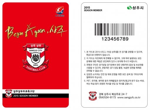 한편, 상주상무는 올해 캐치프레이즈를 담은 연간회원권을 발표하며 지난 10일부터 판매에 돌입했다. 이번 연간회원권은 기존의 디자인에서 탈피하여 구단의 핵심 칼라인 강렬한 빨강을 바탕으로 한 바디에 캐치프레이즈인 ‘Begin Again, 상주’를 골드 빛으로 담아내 소장가치를 높였다.