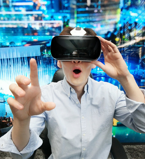 이는 스마트폰 ‘갤럭시노트4’와 연동해 모바일 콘텐츠를 더 생생하게 즐길 수 있도록 해주는 가상현실(VR) 헤드셋. 360도 파노라믹 뷰와 넓은 시야각을 통한 공간감으로 몰입감을 더해준다. 갤럭시노트4의 5.7인치 쿼드HD 슈퍼아몰레드 디스플레이를 기반으로 가상현실 콘텐츠를 즐길 수 있다. 인체 공학적 디자인으로 편안한 착용감을 제공하고 지연 시간을 최소화해 시청 중 머리를 움직여도 화면이 끊어지는 등의 현상이 거의 없다는 것이 삼성 측의 설명이다.