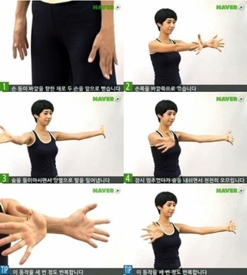 이 영상에 나타난 화가 치밀 때 좋은 체조를 하려면 우선 두 손을 앞으로 뻗어 손바닥을 마주 한 후 바깥쪽으로 꺾어주며 깊이 숨을 들이쉬어야 한다. 그 이후 팔을 평형으로 벌리고 숨을 내쉰 뒤 다시 두 팔을 뻗은 채로 오므려준다.