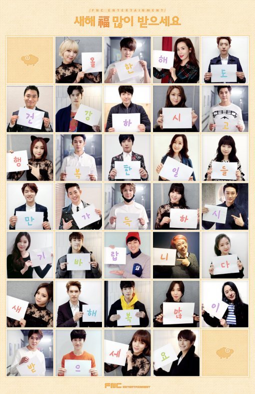 FNC엔터테인먼트는 17일 공식 SNS를 통해 소속 아티스트들이 참여한 설날 인사 메시지가 담긴 사진을 공개했다.