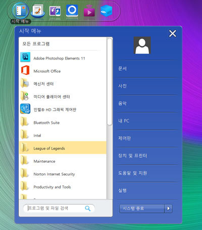화면을 살펴보면 삼성 노트북 전용 소프트웨어들을 곧장 실행할 수 있는 링크를 모아둔 위젯이 상단에 있는 것이 눈에 띈다. 윈도8과 8.1에서 사라진 윈도7 형식의 시작 메뉴, 노트북을 공장 초기화하거나 이전 시점의 상태로 되돌리는 복