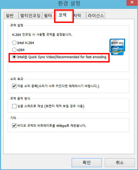 퀵 싱크 비디오 활성화로 동영상 인코딩 속도 대폭 개선 가능