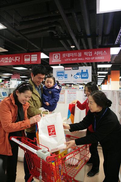 유통업계가 대목인 설을 맞아 ‘특별 프로모션’을 벌인다. 신학기 선물기획전, 주부들을 위한 힐링기획, 할인이벤트 등 다양하다. 장시간 운전에 필요한 음료 등을 선 구매해 설정한 시간에 맞춰 직접 받아갈 수 있는 롯데마트 마장휴게소점의 ‘픽업 서비스’. 사진제공|롯데마트