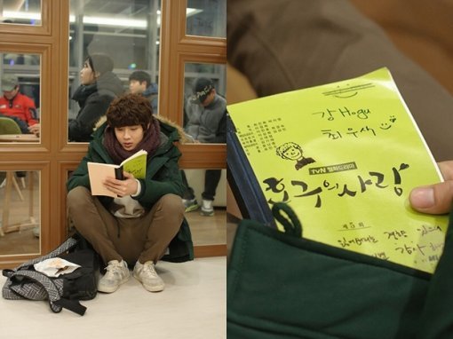 tvN 월화드라마 ‘호구의 사랑’(연출 표민수, 극본 윤난중, 제작 MI) 최우식의 깜찍한 대본이 포착됐다.