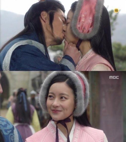 이에 신율은 “돈은 필요 없고 재주를 보여주시오”라고 요청하자, 왕소는 “너에게 나의 필살기를 보여주지. 눈동자를 마음대로 움직이는 동공마술이다”라며 장난스럽게 눈빛을 주고 받더니 진하게 키스했다.