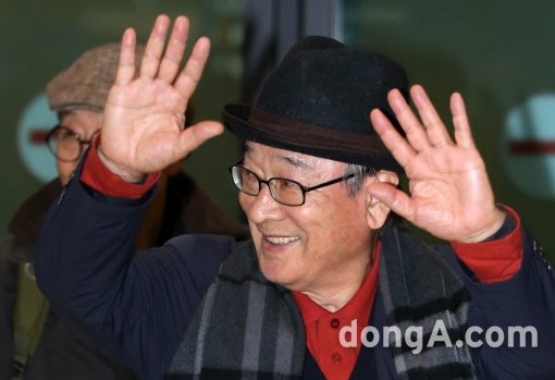 배우 이순재가 25일 오후 인천국제공항을 통해 입국하고 있다.