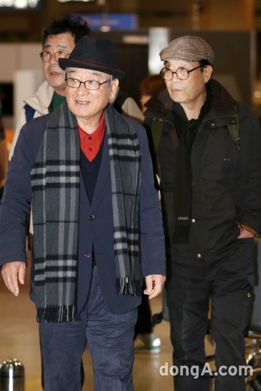 배우 이순재가 25일 오후 인천국제공항을 통해 입국하고 있다.