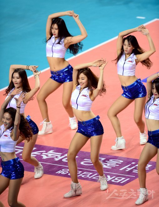 IBK기업은행 치어리더가 화려한 공연을 선보이고 있다.