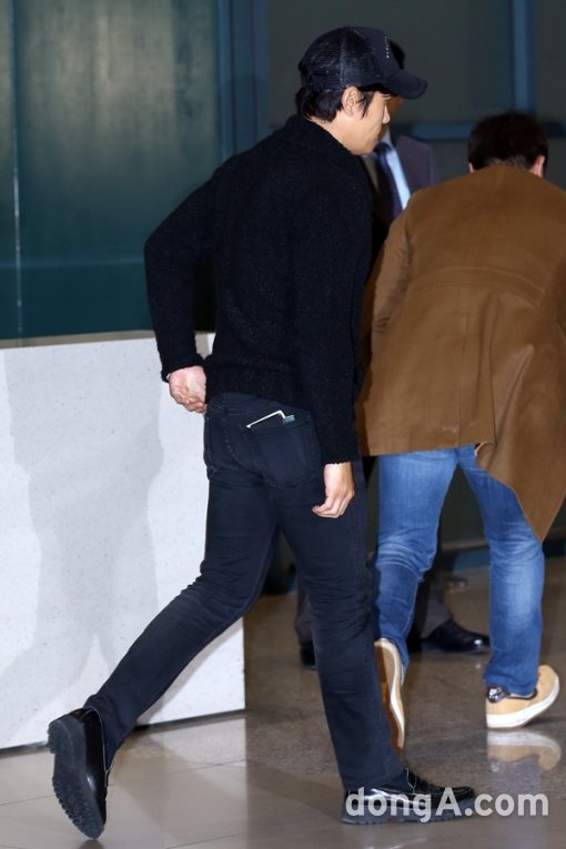 배우 이병헌이 26일 오전 아내 이민정과 함께 인천국제공항을 통해 입국했다.