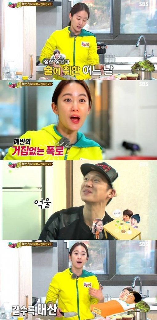 전혜빈은 25일 오후 방송된 SBS ‘에코빌리지 즐거운家’(이하 ‘즐거운가’)에서 “송창의가 만취해서 우리집 앞에서 소리를 지르더라”고 말했다.