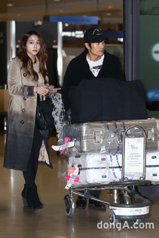 배우 이병헌이 26일 오전 아내 이민정과 함께 인천국제공항을 통해 입국했다.